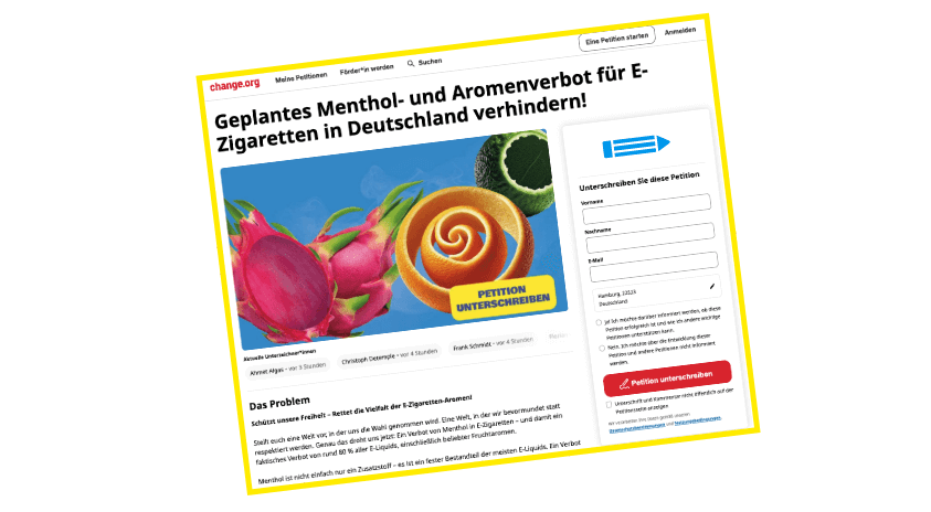 Unterstütze unsere Petition gegen das geplante Aromenverbot.